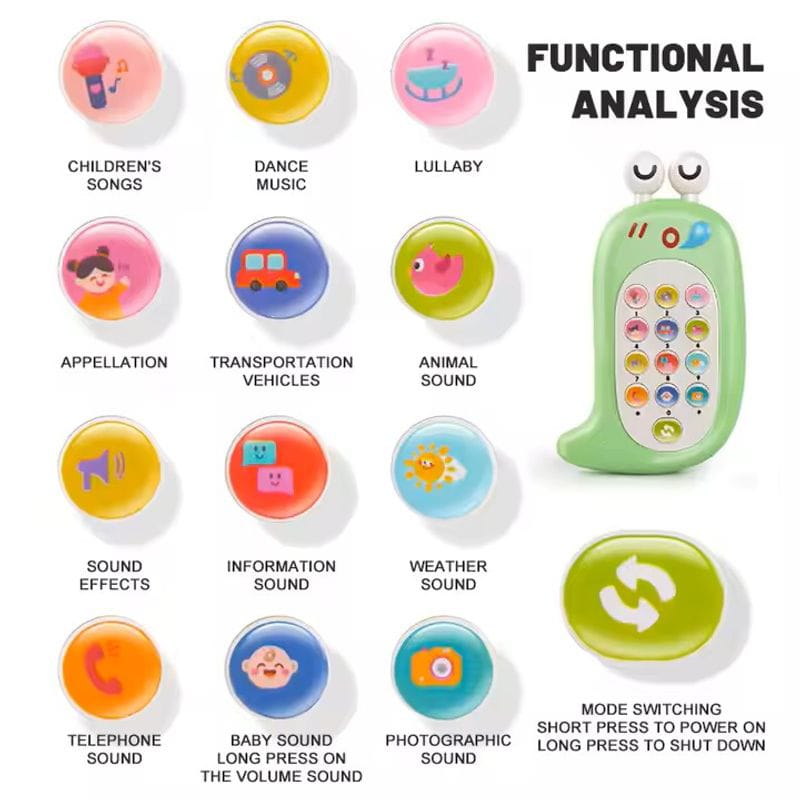 Melodías relajantes: Involucre a su hijo con un teléfono de juguete para niños que no solo alivia la irritabilidad, sino que también crea un ambiente de sueño sereno con sonidos suaves y agradables y efectos de sonido fáciles de activar. Uso múltiple: Fomente la imaginación de su hijo con nuestro teléfono de juguete para niños. Ideal para uso doméstico, al aire libre y de viaje, ofrece diversas oportunidades para jugar sin inhibiciones. Idea de regalo: este teléfono de juguete para niños es un regalo ideal para mantenerlos involucrados en la diversión educativa y mejorar sus habilidades de control remoto. ¡Perfecto para la escuela o para jugar en casa!
